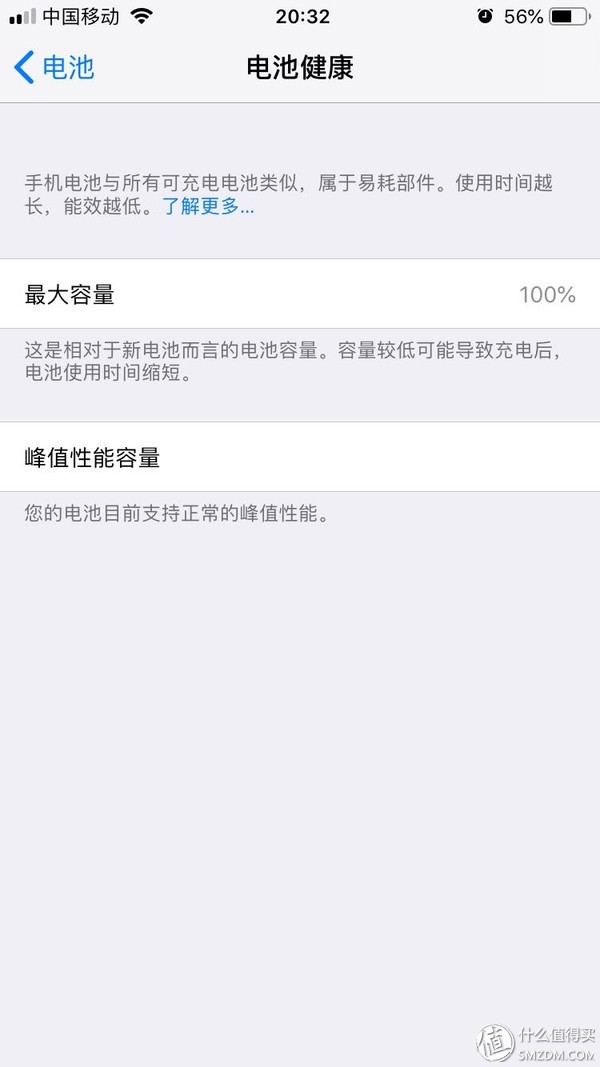 稍等片刻,电池健康此时变为100%了,电池支持正常峰值性能。