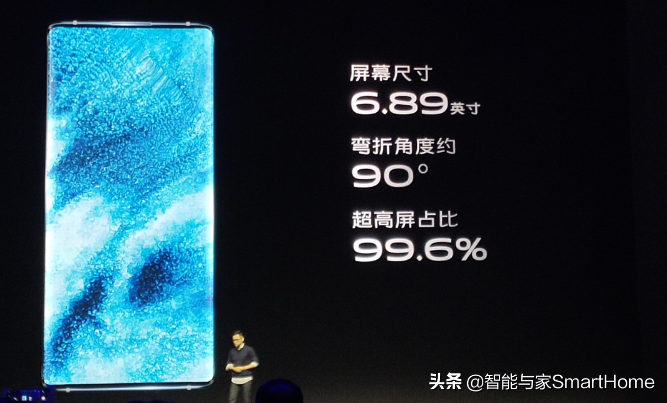 NEX 3打破屏幕边框的限制,将一块6.89英寸(握持手感5.5英寸)的FHD+柔性屏左右显示区域直接向下弯曲到近乎垂直的状态。在追求屏幕曲率的最大化同时,NEX 3减小边框在内的无效面积,使得NEX 3在主视角下几乎是0mm边框,达到了行业内的最高屏占比——99.6%。